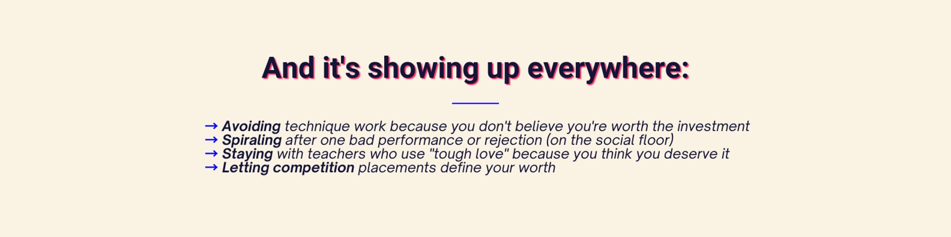20+ years dancing. 5+ years transforming dancers and dance communities. I don't do confidence coaching. I do root work.